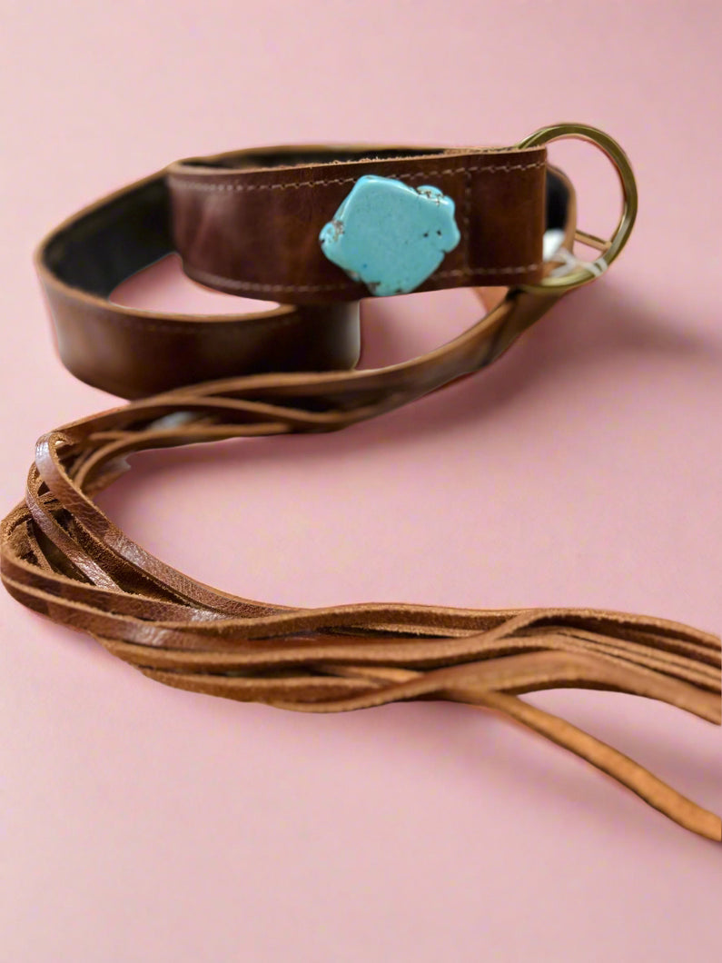 leather fringe belt w/ turquoise slab