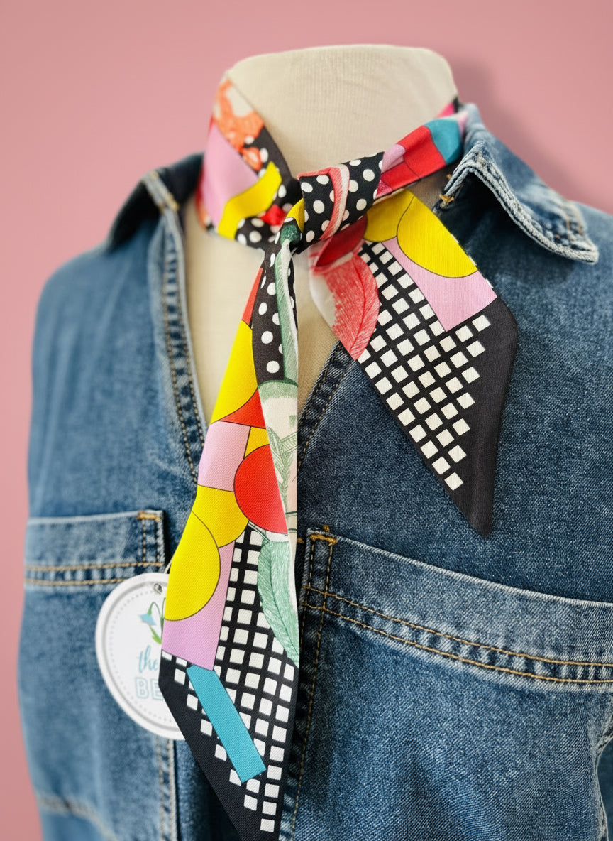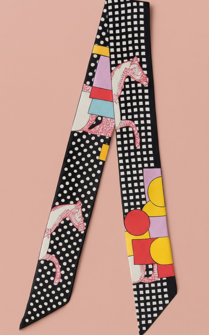 Add a fun twist to your look with this twilly skinny scarf, featuring a sleek geometric square print in chic neutral shades. Measuring 2" by 35.4" and made from soft 100% polyester, it’s perfect for tying around your neck, sprucing up your hair, or jazzing up your favorite bag. This playful accessory lets you mix style and charm effortlessly every day!
